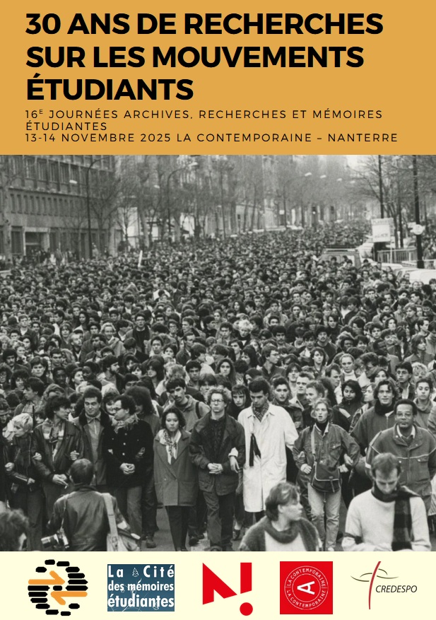 Le GERME et la Cité des Mémoires étudiantes organisent les jeudi 13 et vendredi 14 novembre 2025 leur 16e JARME. C’est sur le campus de l’université de Nanterre, à la Contemporaine (ex-BDIC). Venez nombreux !